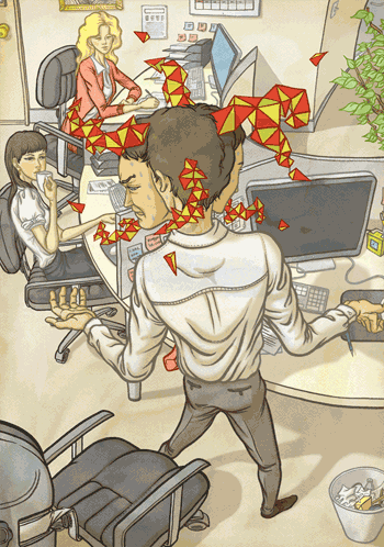 His signature work is highly recognizable due to the muti-plan perspective often with wave-like ribbons, the somewhat washed-out palette where context and message blur together to give way to fantastic landscapes and characters who are kind of floating or distorting in space.