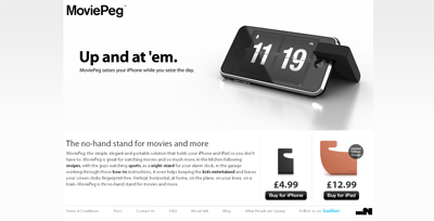 MoviePeg: the simple, elegant and portable solution that holds your iPhone and iPad so you don’t have to. Digging these! And really nice website to boot too.