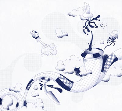 BIC Never Ending Friends project was interactive art directed, designed and illustrated by Leandro Lima. Luv the recognizable hand-drawn looking pen-like blue marine blue with red accents.