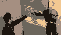Hector are projects done with llustrator paths that are somehow hooked to a computer which then remotely activates a spraypaint can that renders it on large surfaces or walls...