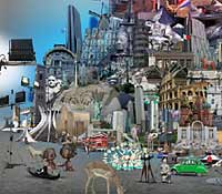Hum... hum... she did get carried away! Geneviève Gaucklerdid an exhibit at Someday Gallery of mix media collages holding more than a couple hundred pictures as you will see and invaded by the familiar little characters that are her trade mark.