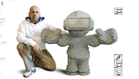 Arjan Westerdiep better known as drububu and one of the first pixel design artist (circa 1999), mashes up a one metre high drububu statue in real legobricks.