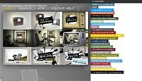 The flash website for VIEW is showing contextual visuals for the different projects they've completed. Seek for the little arrow or text icon in the portfolio menu section.