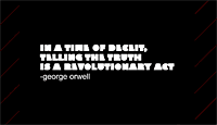 “In a time of deceit, telling the truth is a revolutionary act.” — George Orwell