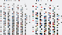 The timeline starts with raw data taken from photos and information gathered from each individual car. The data is then broken down into abstract shapes and optical mixing giving the viewer various choices depending on their personal visual preference. At the end the data is compiled in a fairly generic information graphic.
