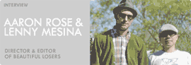 Mike Cerda is the editor of The Filmlot who published an interview with Aaron Rose & Lenny Mesina makers of Beautiful Losers. Reason I'm featuring this interview is because of the gruelling steps and not too pretty behind the scenes pittfalls and problems that are exposed, sometimes harshly. Secondly, because the topic of the film which “celebrates the spirit behind one of the most influential cultural movements of a generation. In the early 1990's a loose-knit group of likeminded outsiders found common ground at a little NYC storefront gallery.” is worth knowing about.