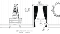 Département Féminin is an online boutique that uses a travelling flash interface with drawn line arts all black and white with legs walking (guess right, they are in the shoes and related accessories business) around reproducing the actual interior of the boutique.