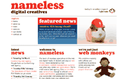 Gotta luv this! Nameless is a web design Bristol, London, Glasgow, Cardiff, digital media creatives, usability, accessibility, SEO agency and their website is sports a simple interface with fun captions... like stating they are not just web monkeys!
