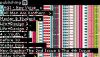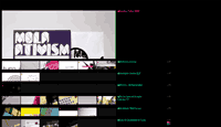 That is different! Have a look at mola ativism website. All the projects are listed in rows, one on top of the others but as you mouse over a larger visual appears. Choose and click one. Some of the sections include small movies of the making of.