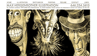 Max Hergenrother has cumulated an impressive education background and does commercial art, retouching and commissions. His artwork is both well-executed with a slant charicactural comic side to it.