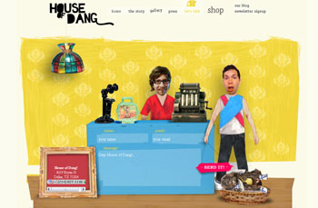 Gotta luv this one! House of Dang is the miniature (yepp all furniture are photographed miniatures with drawn cutout dolls of Doug Voisin and Andrew Bayer) version of the brick and mortar store in Dallas that also hosts their creation office.