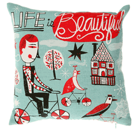 Put your head right here on the Life is Beautiful pillow by one of my fav illustrator of whimsical. Nate Williams who has a formal training in sculpture, worked many years at Microsoft in the marketing department before pursuing art and illustration.