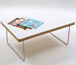 Sara Huston grew up in her father wood shop and after earning multiple degrees, she now designs her own furniture. Gotta luv this table, how neat to stack 3 favorite magazines flat into it!