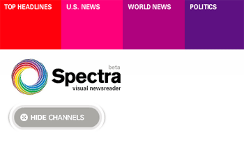 Another flashy way of showing news? Spectra is in beta and is a visual news reader. No doubt a technical feat, good idea to color seperate the content. But at 7 in the morning isn't that a tad too much animated stuff for a sluggish mind.
