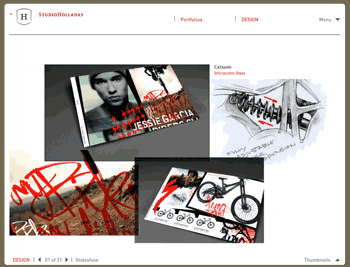 Ted Holladay is owner of Studio Holladay, a design, motion and photo studio in Santa Cruz, California with nice corporate (mostly) work and editorial design.