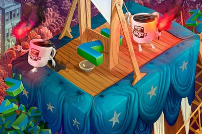 His, is a world of endless possibilities where his imagination keeps on churning amazing landscapes, unexpected characters out of the most mundane objects or organic shapes. His style can effortlessly (it seems) vary from assignment to assigment.
